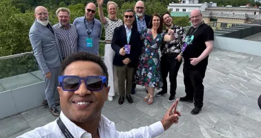 Gruppenbild des Professional Service Committee bei der ECOO-Sitzung in Ljubljana: (Vorne) Mitglied der ECOO (Portugal), 2. Reihe (v. l. n. r.) Iwan Zanchetta (Schweiz), Pavel Šebek (Tschechien), Kerstien Gabarretta (Malta), Gabriëlle Janssen (ECOO-Präsident aus den Niederlanden), Ignacio José Costas Gonzalez (Spanien), Stephan Hirschfeld (Deutschland), Julie-Anne Little (Großbritannien), Konrad Abramczuk (Polen), Martin O’Brien (Irland)