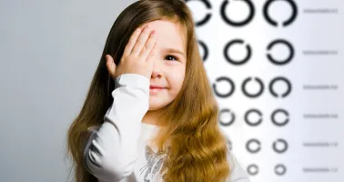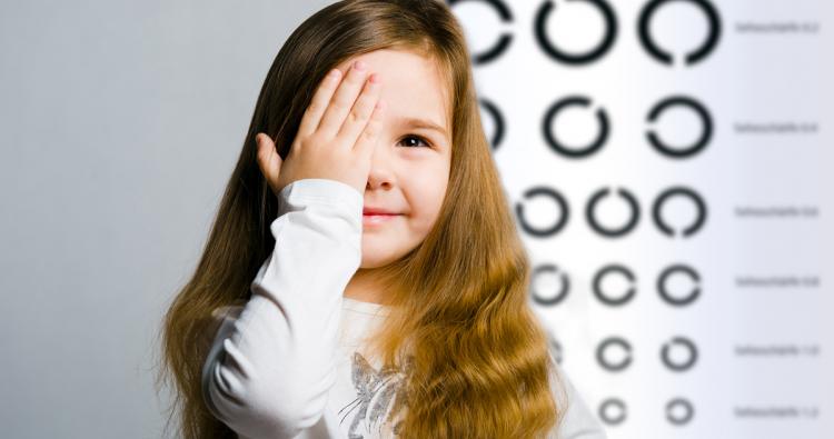 Ein Mädchen macht einen Sehtest. Sofern die Parameter auf eine Myopieprogression hindeuten, wird der Augenspezialist kontrollierende Maßnahmen, wie die Versorgung mit Orthokeratologie-Kontaktlinsen, empfehlen.