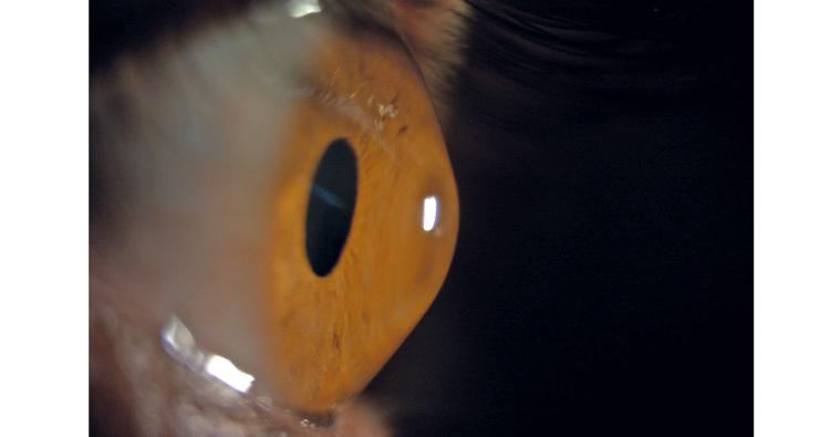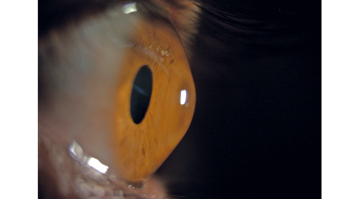 Klassische Vorwölbung einer Hornhaut bei Keratokonus.