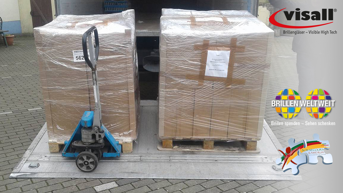 TeilenIn den kommenden Wochen soll ein Container mit Lichtschutzgläsern der Firma Visall nach Kamerun geschickt werden. "BrillenWeltweit" vermittelte die insgesamt zwei Paletten mit Brillengläsern an die Hilfsorganisation BON Secours Kamerun e.V..