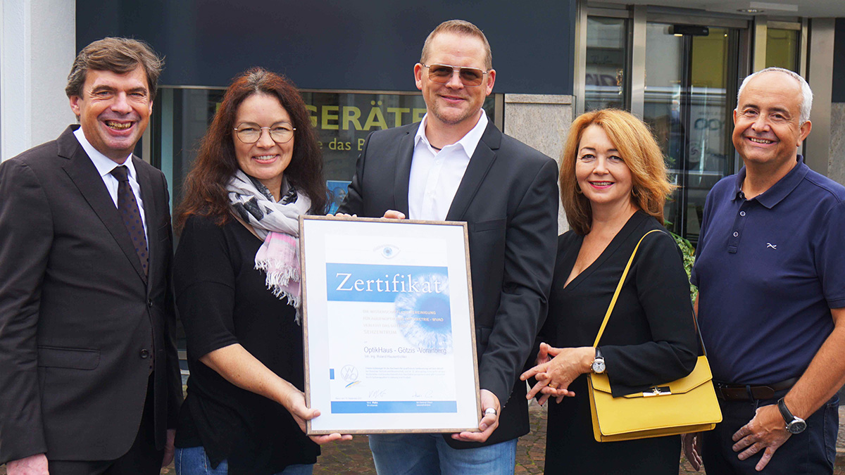 WVAO-Vorstandsmitglied Sabine Schlicht und Geschäftsführer RA Hartmut Glaser überreichten das Gütesiegel dem Augenoptikermeister am 16. September im Rahmen einer Pressekonferenz. Damit haben nunmehr zwei Augenoptikbetriebe aus Österreich die Auszeichnung erhalten. „Die Teilnahme aller Mitarbeiter am Sehzentrum-Kurs, ein zertifizierter Betriebsablauf nebst kundenfreundlicher Kommunikation, die Dokumentation mittels der speziellen SZ-Software mit Kundenausdruck und ein kluges Kundenbeurteilunssystem wurden mit Bravour bewältigt, bevor ein neutraler Auditor diese Qualitätsanforderungen im Betrieb nochmals erfolgreich überprüfte“, hieß es.