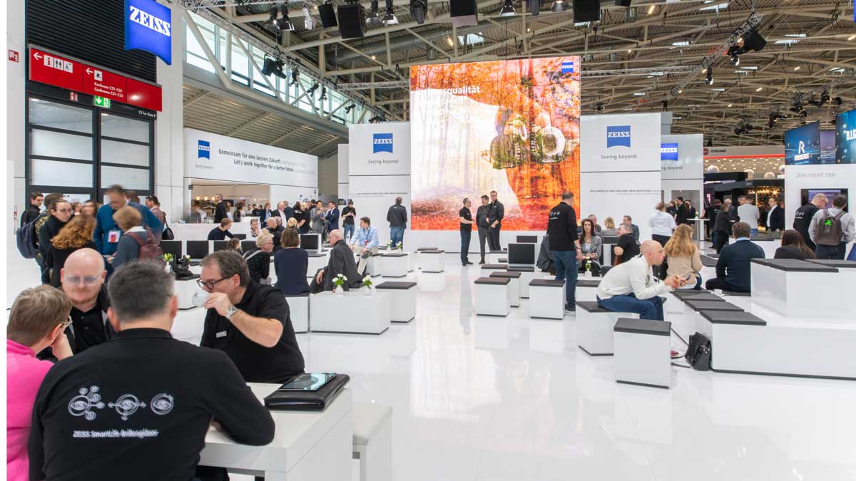Ein Bild, auf das man im Mai verzichten muss: Zeiss wird nicht mit ienem Stand auf der Opti vertreten sein.
