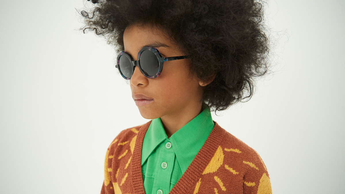Die Sonnenbrillenkollektion umfasst sieben Jungen-, Mädchen- und Unisex-Designs aus Acetat mit trendigen geometrischen Oval- und Pilotenbrillenformen – die Modelle der SS21-Kollektion: Exago, Lil'Boss, See ya, Friyay, What' up?, Coolio und Hide 'N' Seek.