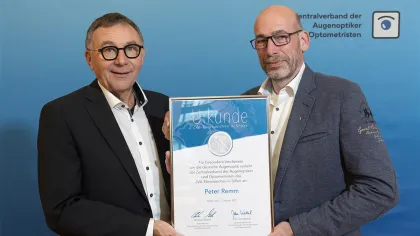 ZVA-Präsident Christian Müller begann die Tagung mit der Ehrung von Peter Remm. Dieser war mehr als 25 Jahre ehrenamtlich für die Augenoptiker-Innung Hannover, den Landesinnungsverband des Augenoptikerhandwerks in Niedersachsen und Bremen sowie den ZVA tätig. Dafür erhielt Remm das ZVA-Ehrenzeichen in Silber. Müller bedankte sich bei Remm für sein Wirken vor allem in der Aus- und Fortbildung sowie Mitgestaltung der Zukunft des Berufsstands.