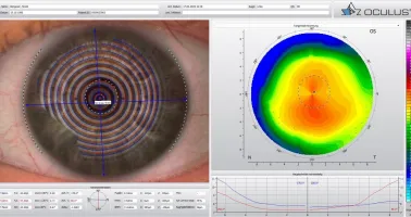 Bild des Topographen der linken Hornhaut vor dem Ortho-K-Experiment.