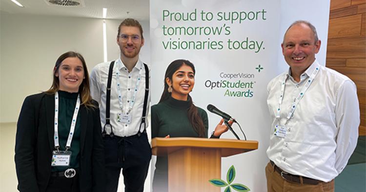 Der OptiStudent Award 2024, ein renommierter Wettbewerb im Bereich Kontaktlinsen, fand Ende Oktober in Ungarn statt und bot Studierenden aus ganz Europa die Möglichkeit, ihre wissenschaftlichen Arbeiten zu präsentieren. Lukas Sempf aus Deutschland konnte dabei einen zweiten Platz mit seiner Bachelorarbeit zum Thema „Vermessung optischer Designparameter weicher Kontaktlinsen in Abhängigkeit unterschiedlicher Kochsalzlösungen“ erzielen. Begleitet wurde er von Katharina Hohm, Professional Affairs bei CooperVision, und seinem Betreuer Professor Wolfgang Sickenberger, Studiengangsleiter Vollzeit-Masterstudiengang "Optometrie/Ophthalmotechnologie/Vision Science" an der EAH Jena.