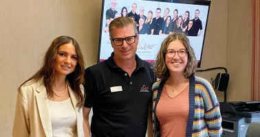 Michael Walter mit zwei seiner Akustikerinnen: Gesellin Sabrina Landeck (links) und Meisterin Alexandra Dries sind zwei der vier Angestellten, die die Hörakustik managen.