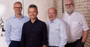 Die Geschäftsführer: Toni Schmidt (Amparex), Alex Schröder (Ipro), Trevor Rowley (Optix), Martin Himmelsbach (Ipro) (v.l.n.r.) freuen sich auf die Zusammenarbeit.