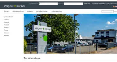Screenshot von der Homepage von Wagner + Kühner: Das Unternehmen wurde 1945 in Bad Kreuznach gegründet und gehört zu den größten Anbietern von Brillenfassungen und Sonnenbrillen in Deutschland.