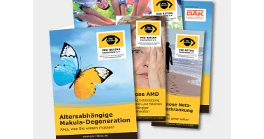 In der Mappe für Augenoptikerinnen und Optometristen sind zahlreiche Informationsmaterialien zum Thema AMD enthalten.