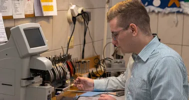 Hier arbeitet der Bundessieger: Alexander Möbius in seinem Ausbildungsbetrieb „Augenoptik Bernhardt“ in Havelberg.