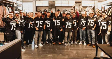 Im neu gestalteten Oakley Showroom im MOC München bekamen die Gäste exklusive Einblicke in die neuesten Oakley Kollektionen. Die Sports Experts stimmten sich dort in mit dem Oakley Gründungsjahr 1975 gebrandeten NFL-Trikots auf das große NFL-Spiel ein.
