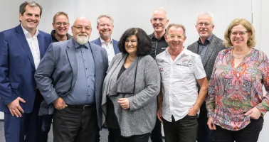 SWAV-Geschäftsführer Peter Kupczyk und der neugewählte Vorstand des SWAV: Daniel Raabe, Andreas Müller, Gunther Oesker, Monika Rasche-Vitallowitz, Ralph Bänsch, Edwin Deutelmoser, Matthias Müller, Patricia Fuchs (v.l.n.r.; es fehlt: Ruth-Silke Lenk-Dross).