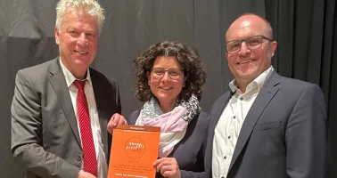 Das Augenoptiker-Ehepaar Sandra und Markus Stammberger (r.) erhielt aus den Händen von Jürgen Kessing, Oberbürgermeister der Stadt Bietigheim-Bissingen, den Ehrenamtspreis 2023..