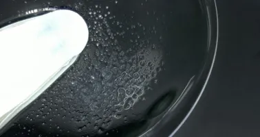 Starke Lipidablagerungen auf einer weichen Kontaktlinse aus Silikon-Hydrogel-Material.
