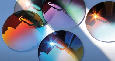 Knallige Farbkompositionen: Optiswiss präsentiert Brillengläser mit einer Kombination aus Flash-Verspiegelung und Farbverlauf.