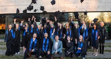 Große Freude beim Abschluss: Hütewerfen der graduierten Augenoptiker und Augenoptikerinnen/ Optometristen und Optometristinnen.