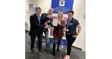 Von links nach rechts: Mathias Biermann (Leiter der Fachakademie für Augenoptik und Optometrie), Augenoptikermeister Oliver Lison, MdL Kirsikka Lansmann, Dipl.-Ing (FH) Sylvia Alps.
