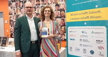 Prof. Stephan Degle und Dr. Michaela Friedrich schauten auf der Interbild natürlich auch am DOZ Stand vorbei.