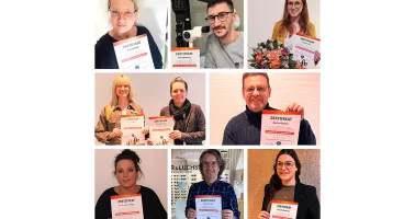Neun der 13 spezialisierten Augenoptikerinnen und Augenoptiker zeigen sich nach bestandener Prüfung glücklich mit dem Zertifikat der WVAO.