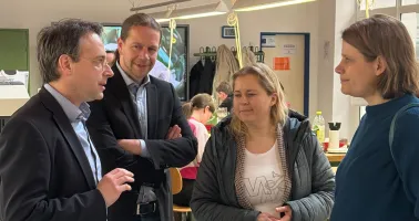 (v.l) Mathias Biermann, Christian Schroeder, Kirsikka Lansmann und Julia Willie Hamburg bei der Begehung der Fachakademie-Labore.