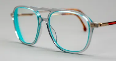 Der Glasrand ist nicht nur in dem typischen Fassungsfarben Schwarz, Braun und Blau erhältlich. Wer‘s knallbunt möchte, bekommt es – in diesem Fall Türkis.