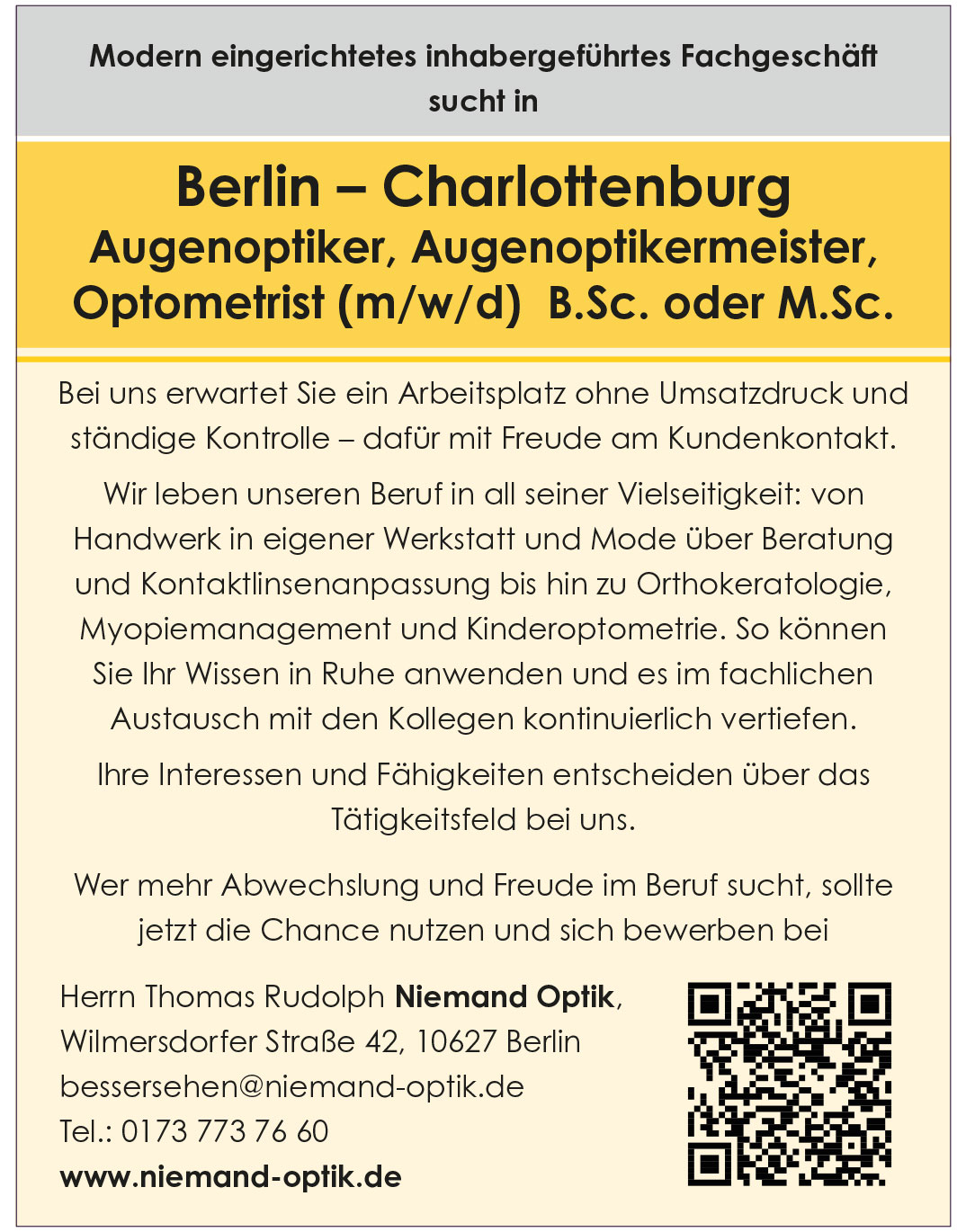 Augenoptiker, Augenoptikermeister, Optometrist (m/w/d) B.Sc. oder M.Sc.
