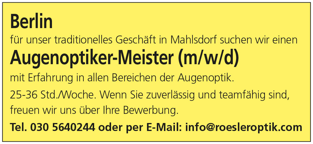 Tel. 030 5640244 oder per E-Mail: info@roesleroptik.com
